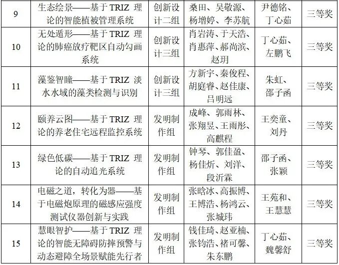 我想特别感谢郑老师、田老师、邵老师,以及我的队友们。郑老师从系统与工程化的角度为项目把关,田老师在创新路径与资源链接上提供方向性指导,邵老师在TRIZ工具选型、应用与表达训练上手把手指导。获奖固然可喜,但更让我珍惜的,是在这个过程中,我学会了怎样把复杂问题变得可讨论、可验证、可落地——这大概就是TRIZ带给我的底气:不依赖灵光一现,而是用系统化的工具,把创新从偶然变为尽可能的必然。