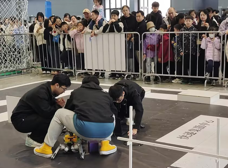 “大部分队伍选择放弃这个任务点,转而追求速度,但我们从一开始就没想过绕过它。”团队成员徐金博回忆道。在备赛的一个多月里,他们尝试了多种方式,最终创新性地采用跳跃上台 而非传统的行走上台,成功解决了机器人因硬件老化、抬腿高度不足而无法登台的难题。